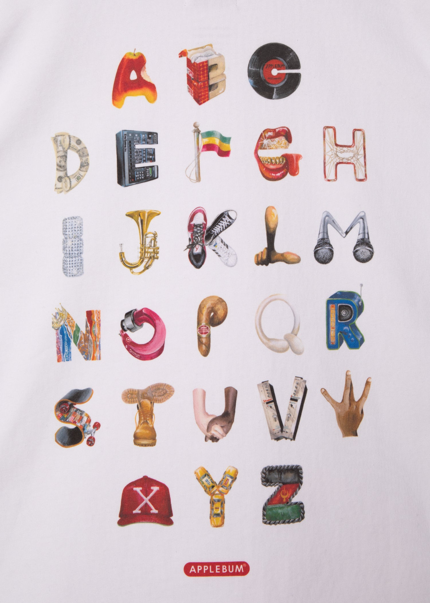 This piece uses motifs related to hip-hop culture to iconicly express APPLEBUM's identity.