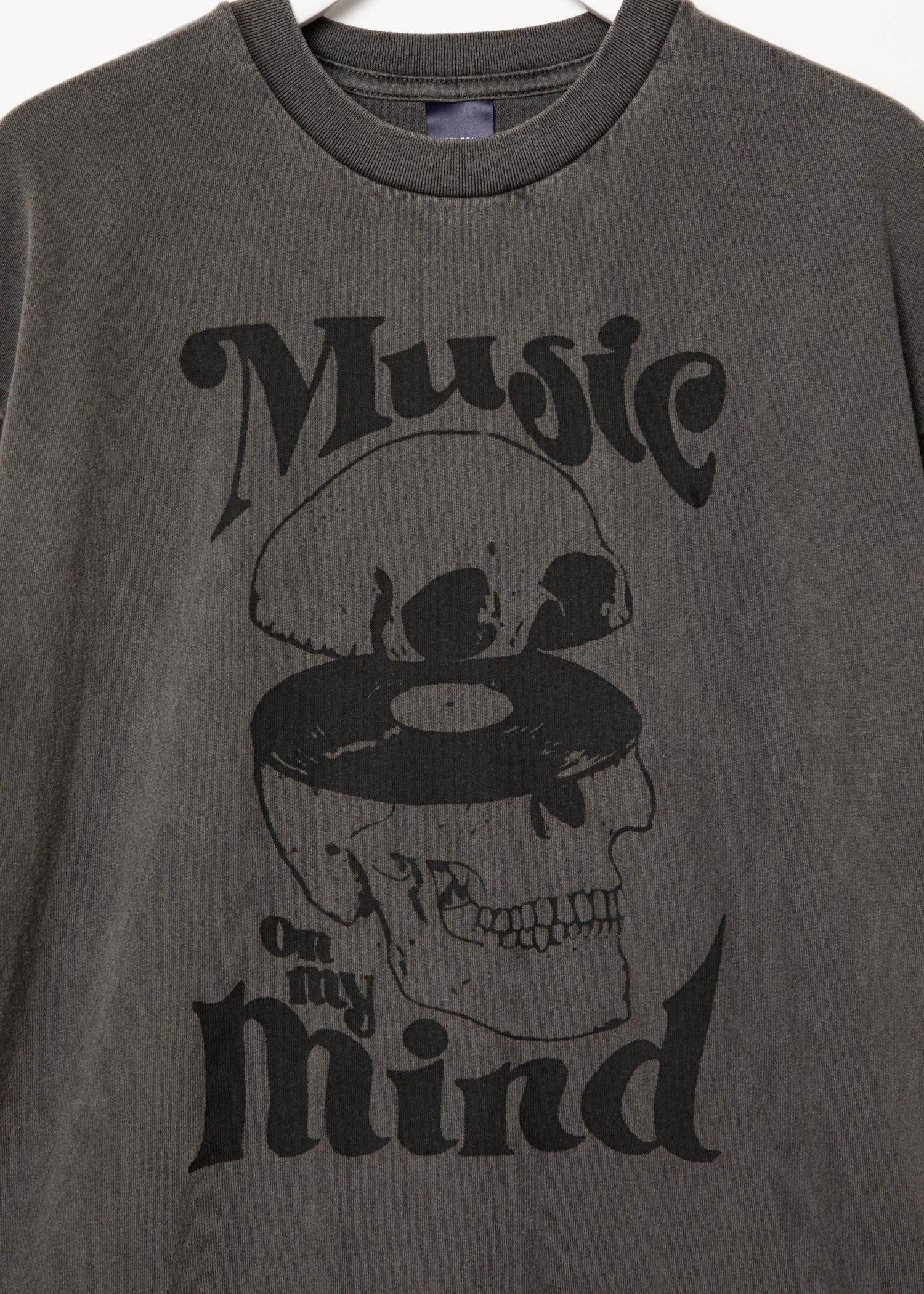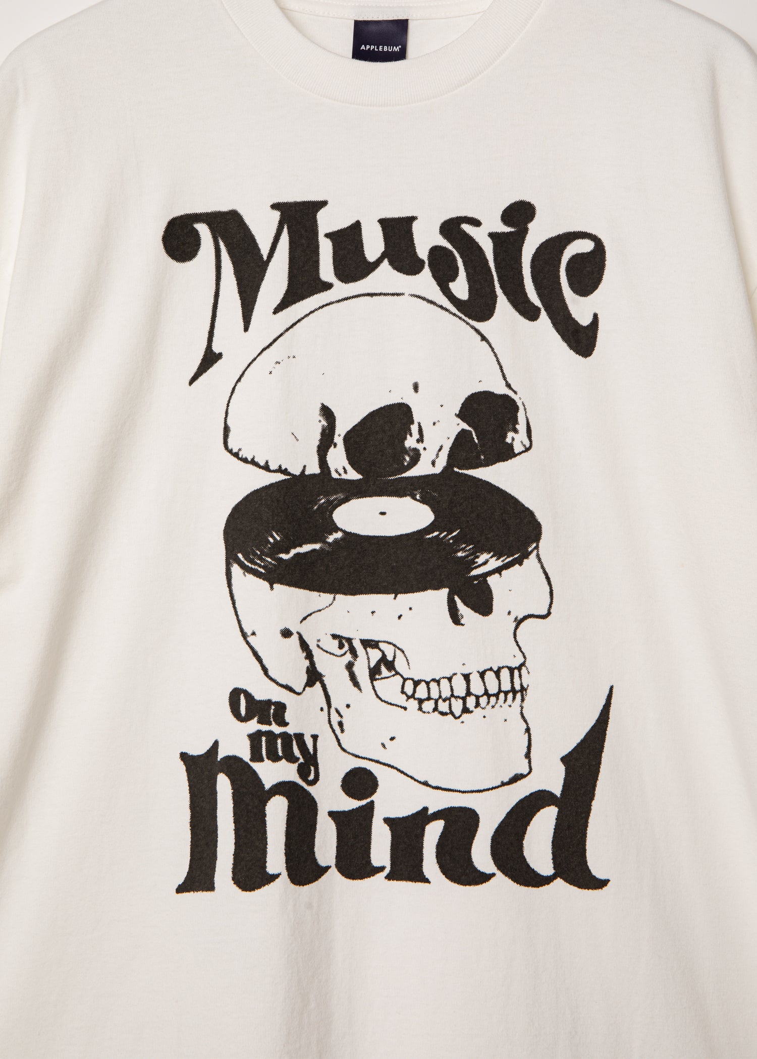 頭蓋骨に重ねたレコード──“音楽が思考を支配する”というメッセージを、ユーモアとダークさを織り交ぜて表現した一枚です。