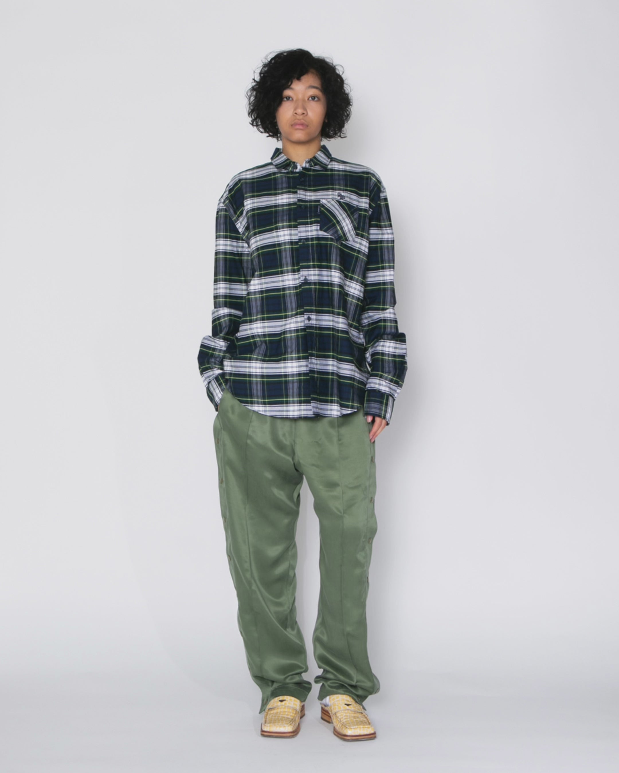 トラッドなチェック柄を、現代的なバランスで仕上げた長袖シャツ。 オーバーサイズすぎない適度なゆとりで、日常に取り入れやすいシルエット。 生地には軽いウォッシュ加工を施し、自然なシワ感とこなれた表情をプラスした1枚です。 ※洗い加工を施しているためサイズに個体差がある場合がございます。