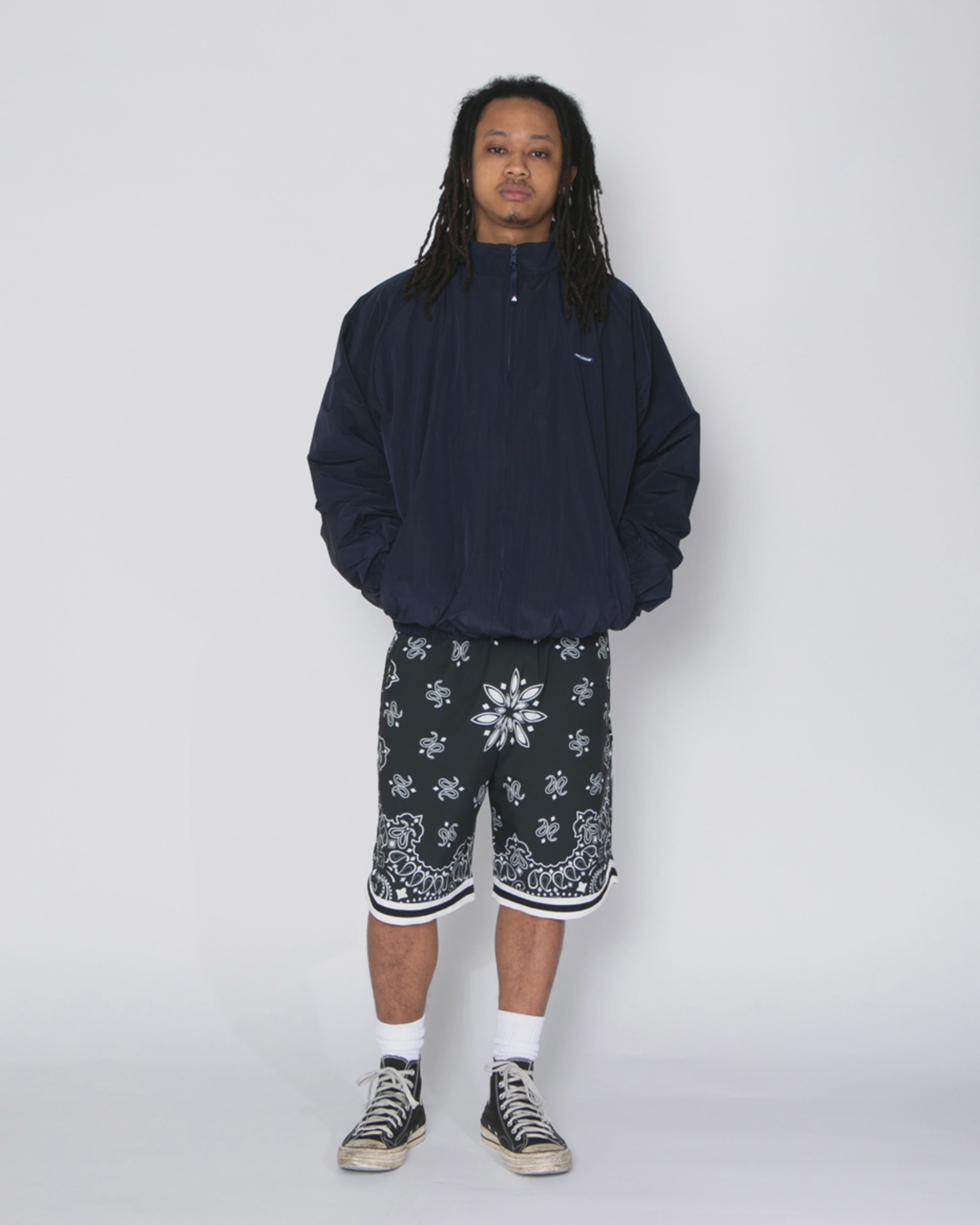 クラシックなペイズリーを、バスケットボールショーツというフィールドに落とし込んだ APPLEBUMらしい“ストリート × スポーツ”のクロスオーバーアイテム。 モノトーンで構成されたペイズリー柄は、重なりや陰影まで丁寧に設計された存在感あるアートワーク。 さらに本格的な選手用スペックを踏襲し、軽さ・通気性・耐久性・可動域の広さまでパフォーマンス性を一切妥協せずに追求しました。