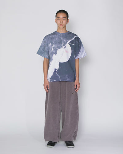 傷だらけのレコード盤をモチーフに、時間と音楽の重みを視覚化したフルグラフィックTシャツ。 崩れ落ちるジャケットの奥からレコードが現れる構図が、ヴィンテージの質感とノイズ感を際立たせます。 使い込まれた一枚のようなリアリティを再現し、スタイリングの主役になる存在感を持ったデザインに仕上げました。 生地は、12ozというウルトラヘビーな天竺生地を使用したオリジナルボディ。 身幅とアームホールを広げ、着丈はやや短めに仕上げました。 滑らかな肌触りの生地感、シルエットをこだわり抜いたオリジナリティ溢れる1枚です。【着用モデル】身長 178cm着用サイズ L