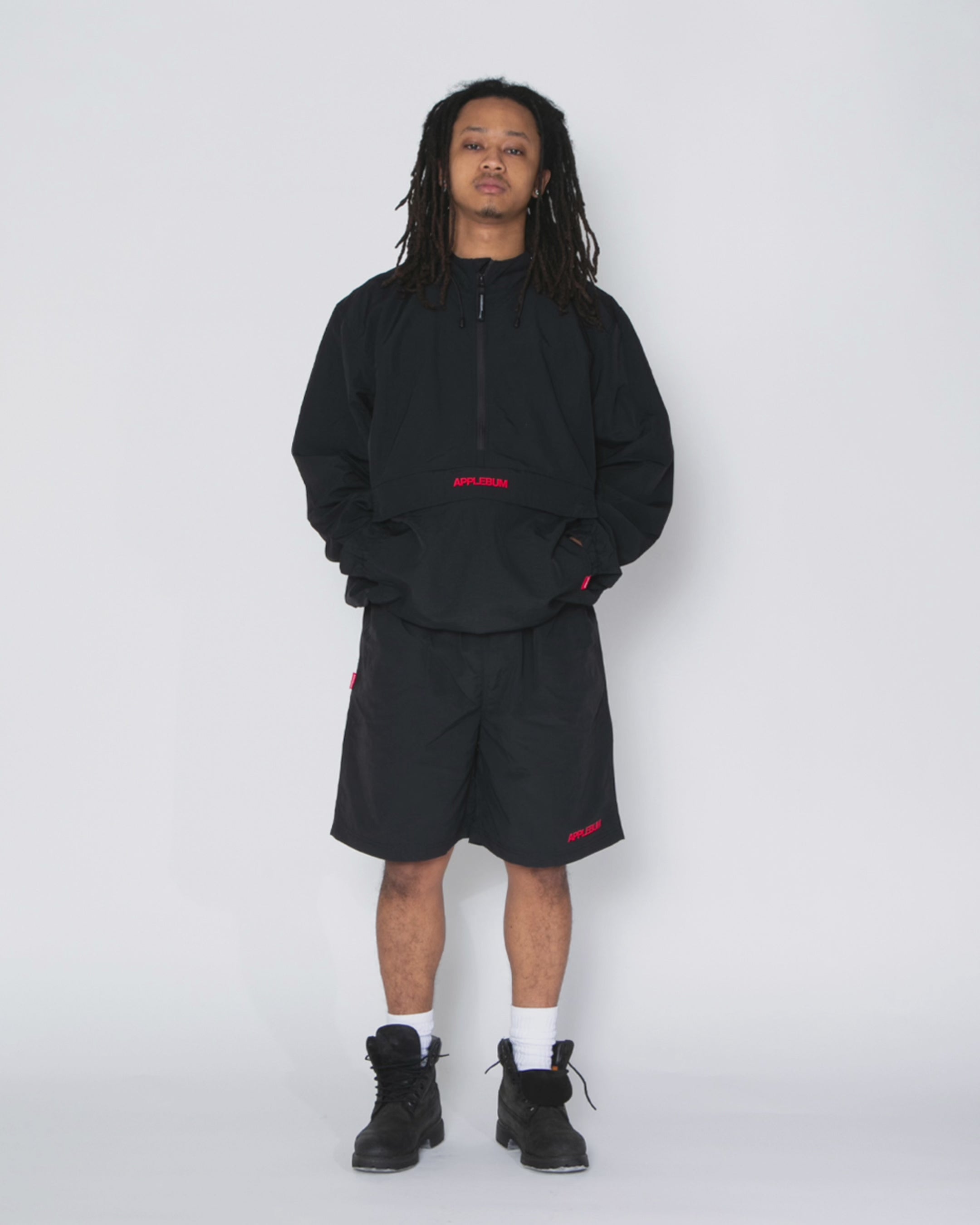 シンプルなナイロン素材のアノラックパーカー。 フロントのポケット部分にロゴプリント。パッカブル仕様となっており、フロント部分のポケットに収納が可能な為、デイリーユースとしてだけで無くアウトドアなど様々なシーンにもおすすめです。 生地にワッシャー加工を施しているため、絶妙なシワによるヌケ感がスタイリングのポイントになってくれる1枚。 ゆとりを持たせたシルエットでトレンド感のあるスタイリングに導いてくれます。