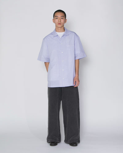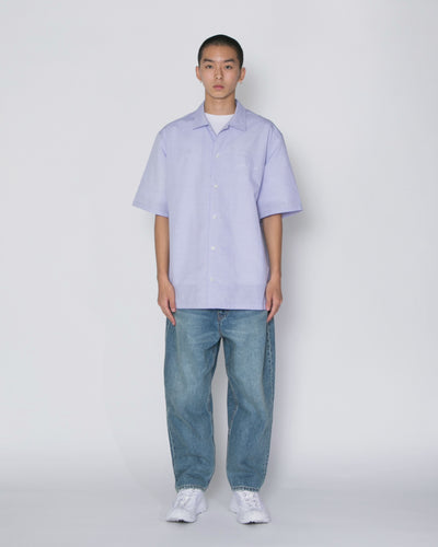 日本製“超長綿タイプライター”生地を使用した、上品でクリーンな半袖シャツ。 超細かなボーダー柄が織りで表現され、シンプルながらも奥行きのある表情に仕上がっています。 軽さ・高級感・ハリ・柔らかさという相反する要素をひとつにまとめた稀有な素材で、 夏でもストレスのない着心地と、天然素材ならではの温かみを両立。 着込むほどに生まれる自然なアタリも魅力です。 ゆったりとしたシルエットが、暑い季節の装いに軽やかさと余裕を添える一着です。